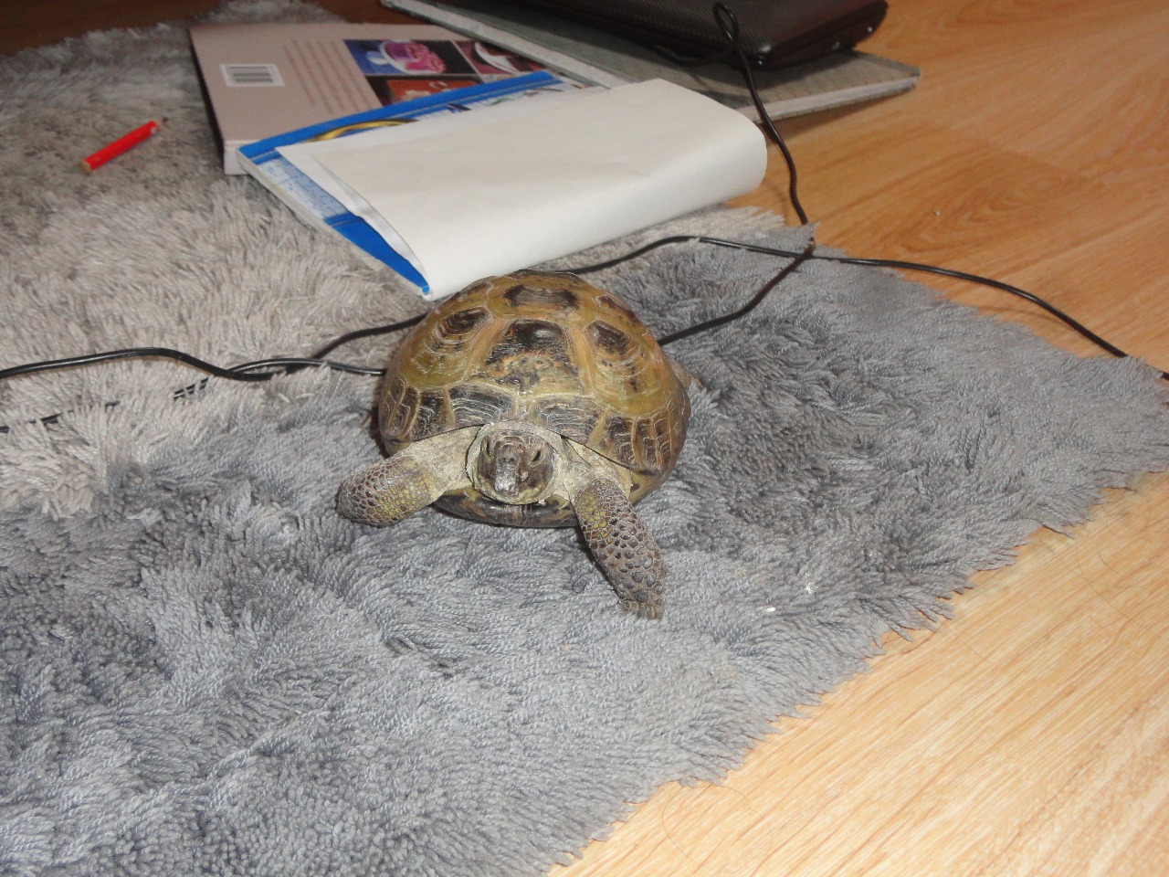 Jediný tvor, kterého mám současně v opatrovnictví v bytě, želva stepní čtyrprstá jménem Myšák (super jméno pro želvu, já vím :-D)